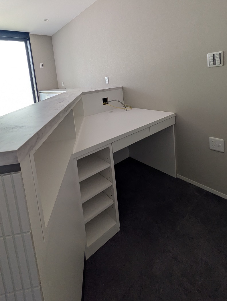 デスクにはパソコン用LAN配線を壁より引込みます。
