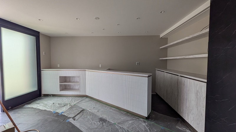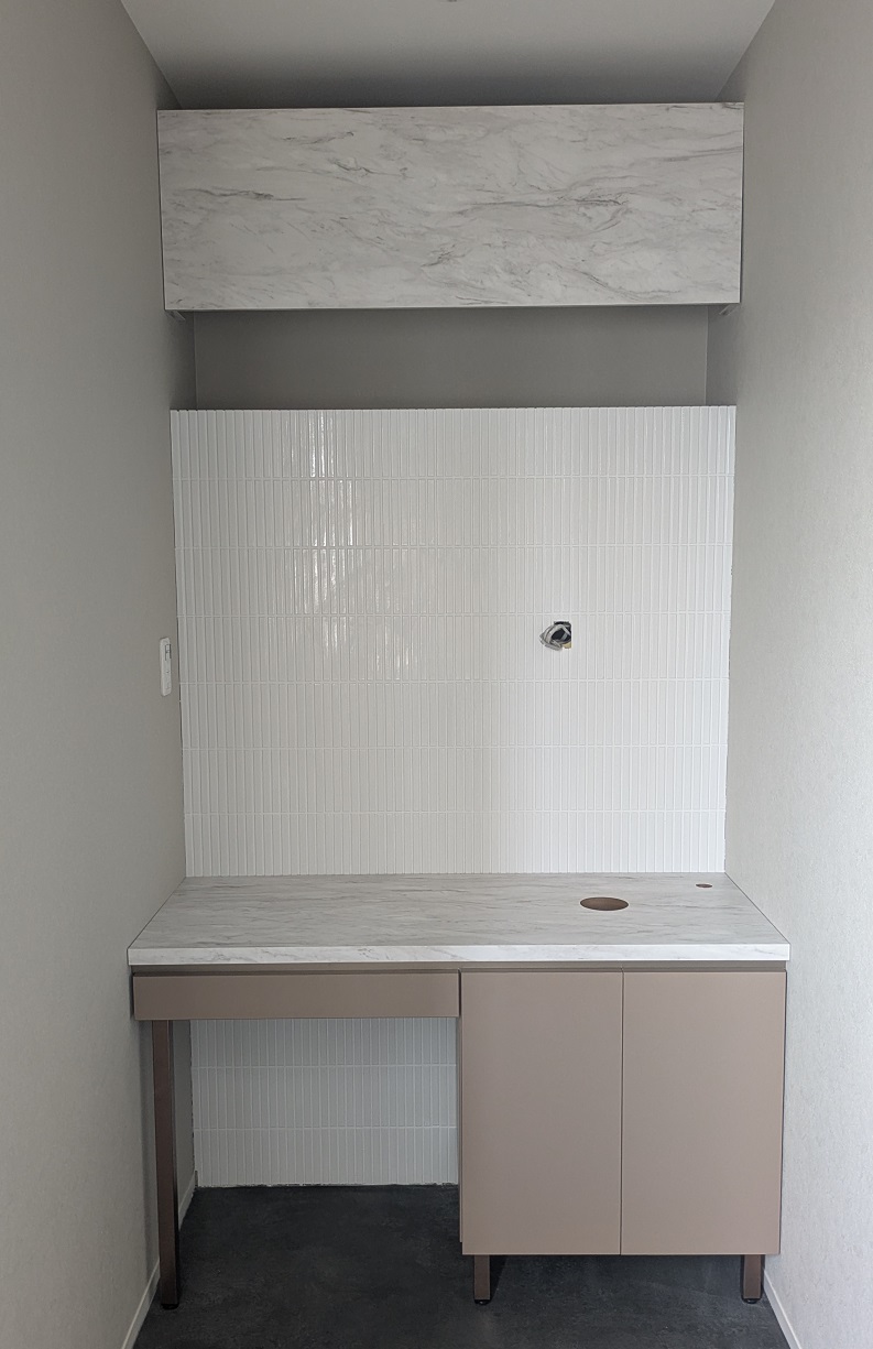 設置する家具を入れ込む為には壁とのクリアー寸法を5mm取る必要が有ります。