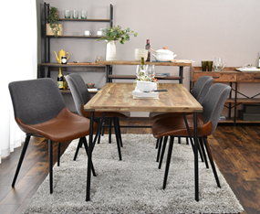 アイアンフレームと天板の古木風がベストマッチなゲンブダイニングテーブル