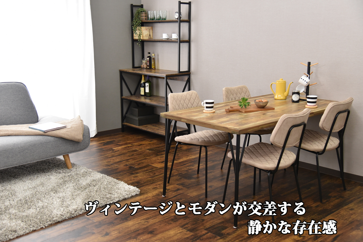 素朴でレトロな趣のある天板とモダンなアイアン製ブラック色の脚との組み合わせで、レトロモダンの優しくぬくもりのあるお部屋作りに最適です。