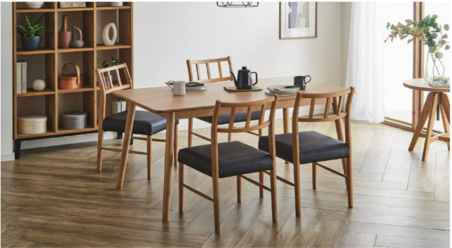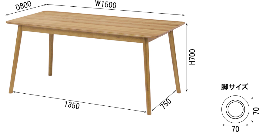 | 材質 | ・天板:オーク突板/MDF ・脚/幕板:ラバーウッド材 |