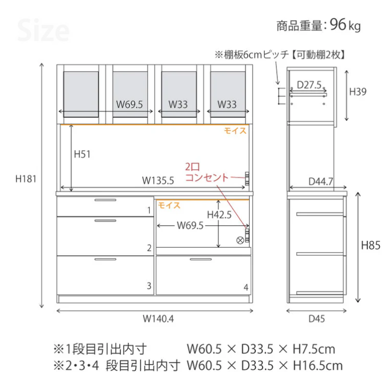 | 材質 | ・前板:強化紙 ・側面:プリント紙 |
