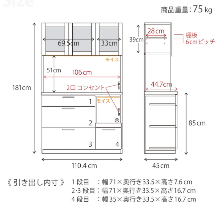 | 棚板 | ・上台:2枚(可動棚) |