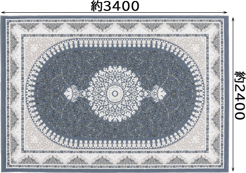 | サイズ 単位mm | 234:約2400x3400 | 素材 | ・ポリエステル60% ポリプロピレン40% ヒートセット ・ パイル長約10mmC |