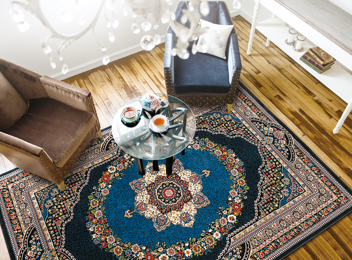 色鮮やかな花々を一面にちりばめた新感覚のオリエンタルデザインのカーペット
