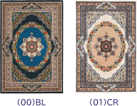 多彩な色の花々を一面にちりばめた、可憐な表情を持つ新感覚なオリエントデザインのカーペット。